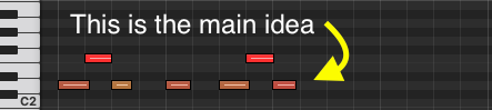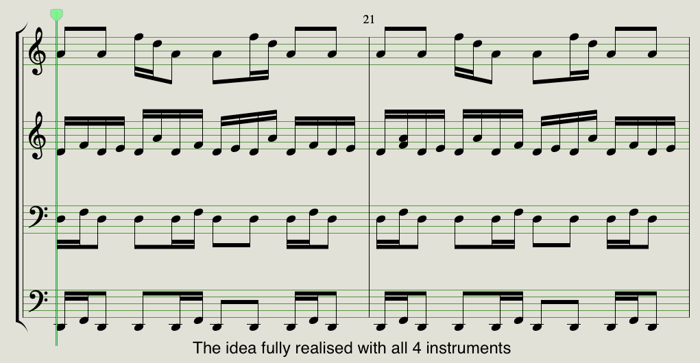 The basic idea here is that I would take that first idea and then grow it into an entire piece of music by extending the rhythm.
