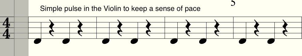 The problem you can sometimes get when you leave too much space is that the track loses momentum. To counteract that in this track I added a simple pulse in the Violin.