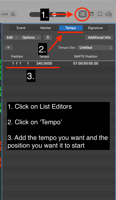 Another way to adjust the tempo of your project is by using the 'List Editors'.