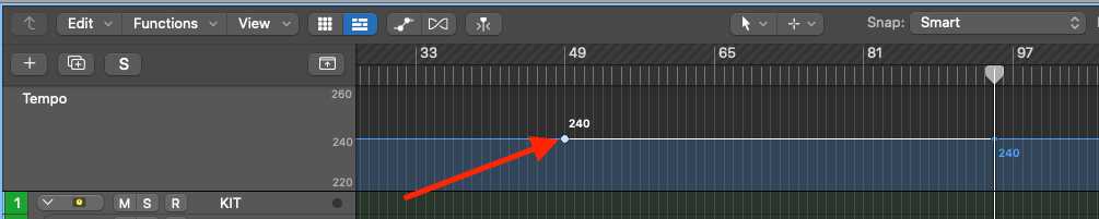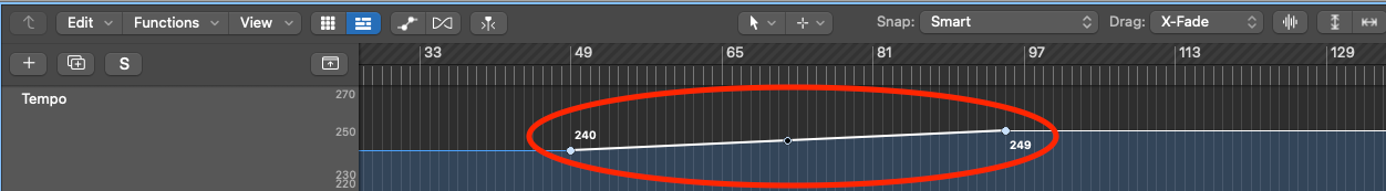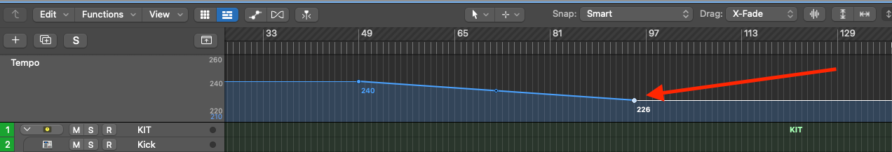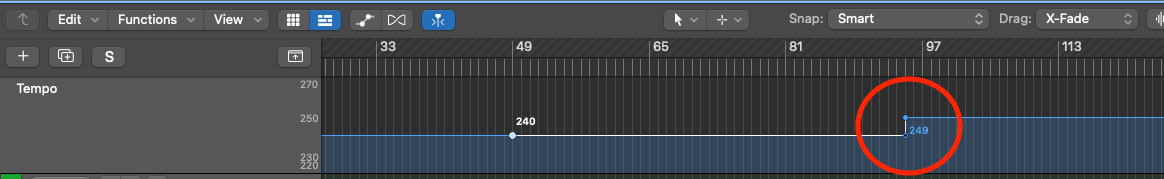 You will then see a circle appear underneath the edit point. This is the 'tempo curve automation point'.
