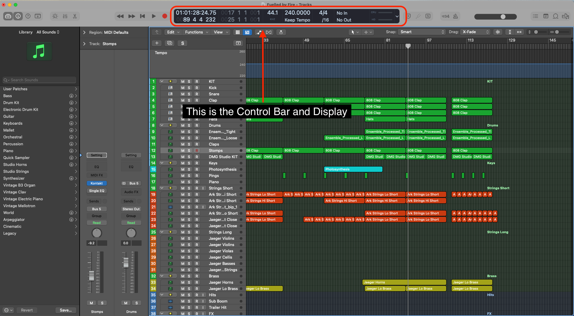Locate the 'Control bar and Display' in your Logic session. (Just a little note, your control bar might look slightly different to mine).