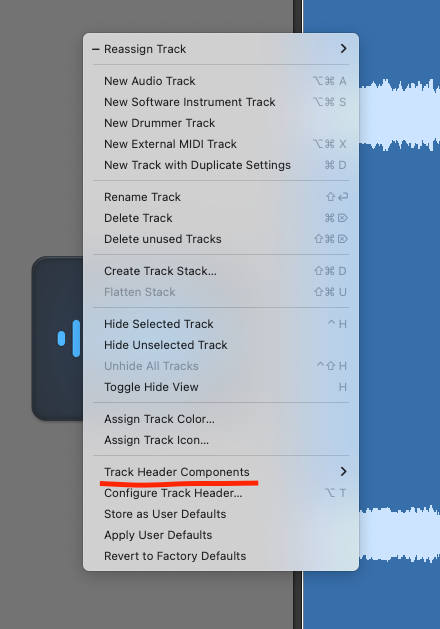 Right-click on any channel strip to reveal the track menu.