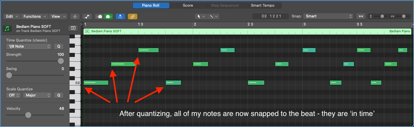 You have just sat down to write a new piece of music, opened up a new session in Logic Pro X, sat at your keyboard and hit record. The trouble used to be that your recording was out of time. Not any more. You can just quantize it and it is magically fixed.