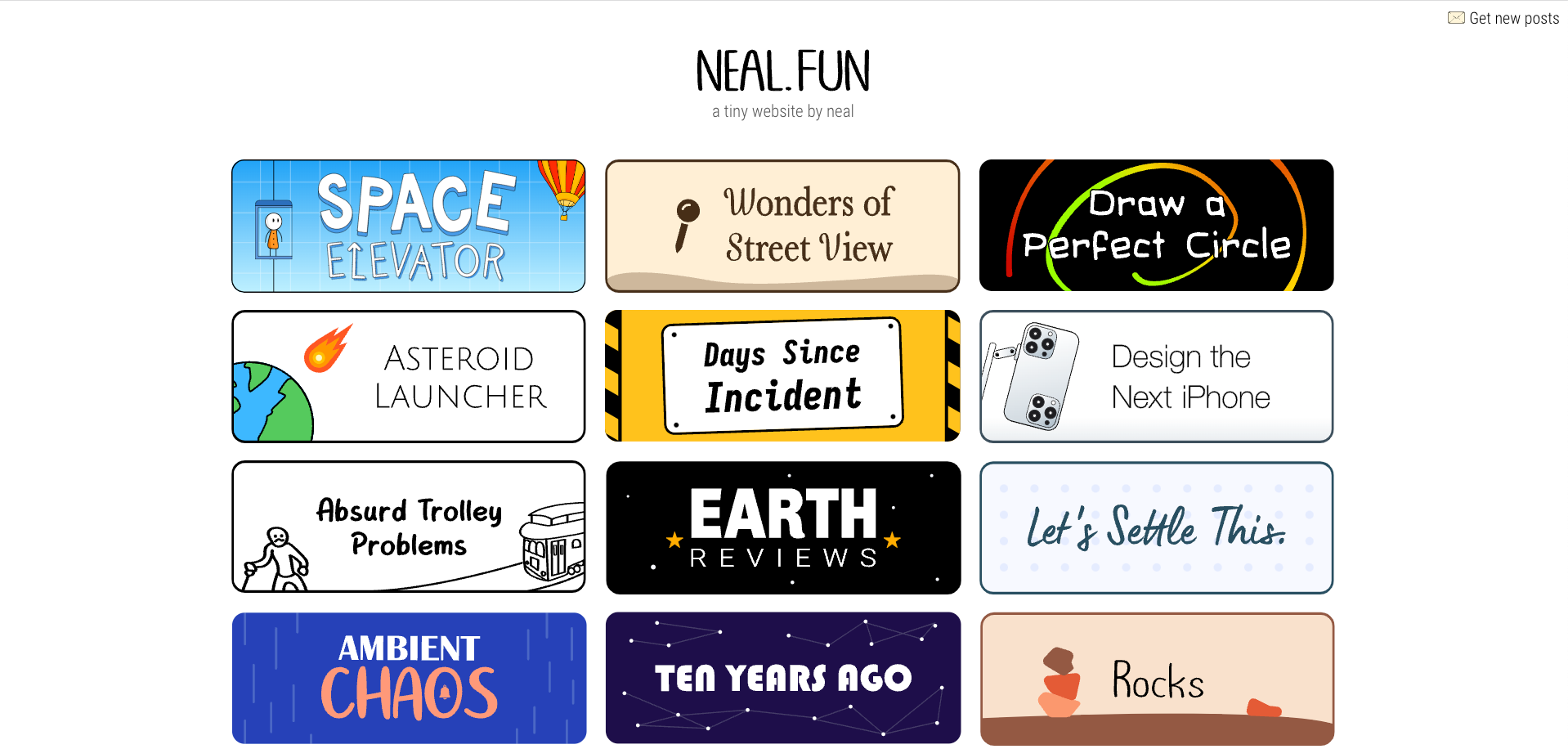 Neil Fun aka Neil Agarwal- this fun little website was recommended by Austin Kleon. I love the Earth Reviews, they are brilliant (as is the Space Elevator)