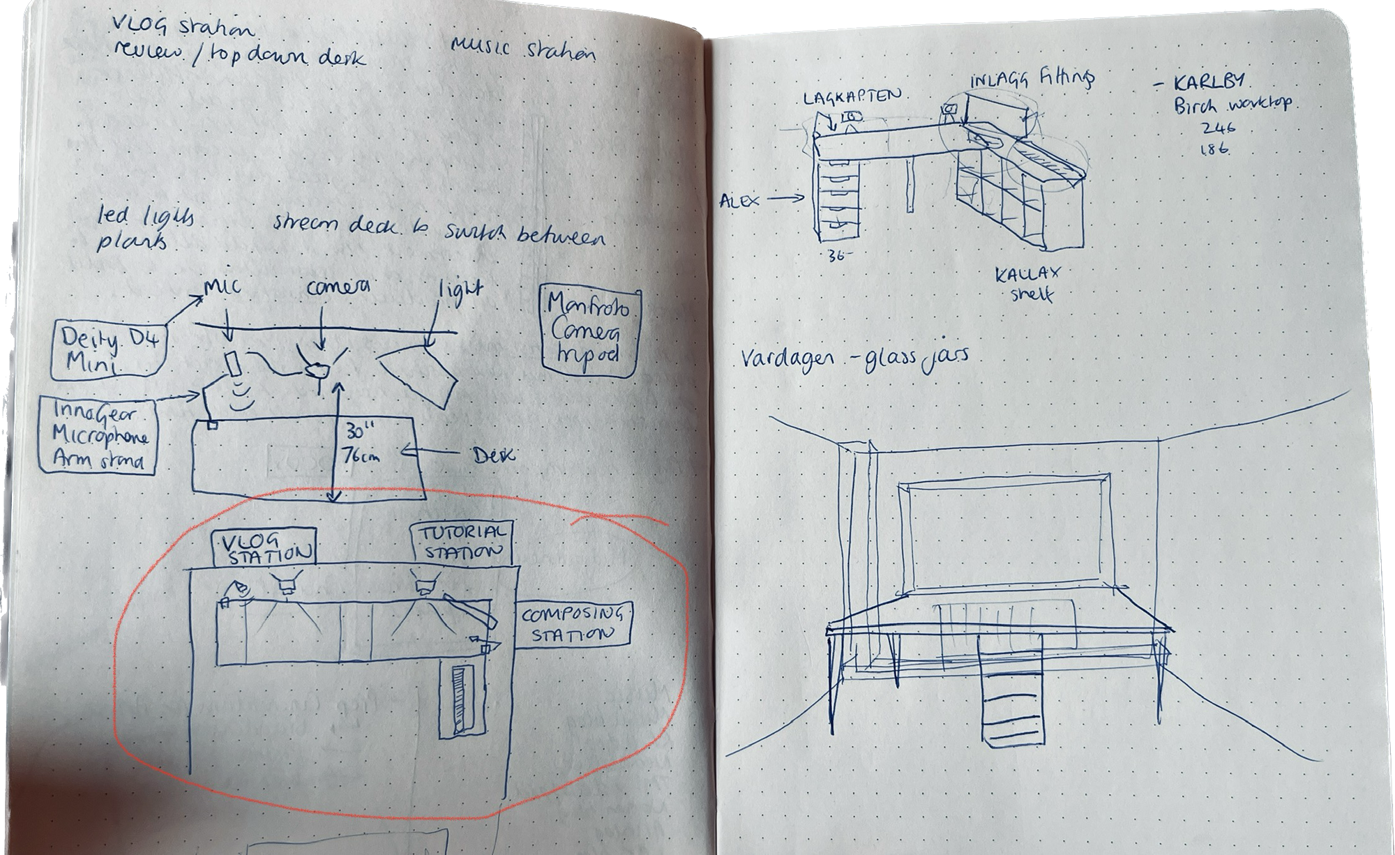 So I watched this great video on the Think Media YouTube channel and as a result sat down and tried to design the space to include not just a station for composing, but also vlogging, AND a good camera position for my tutorials.
