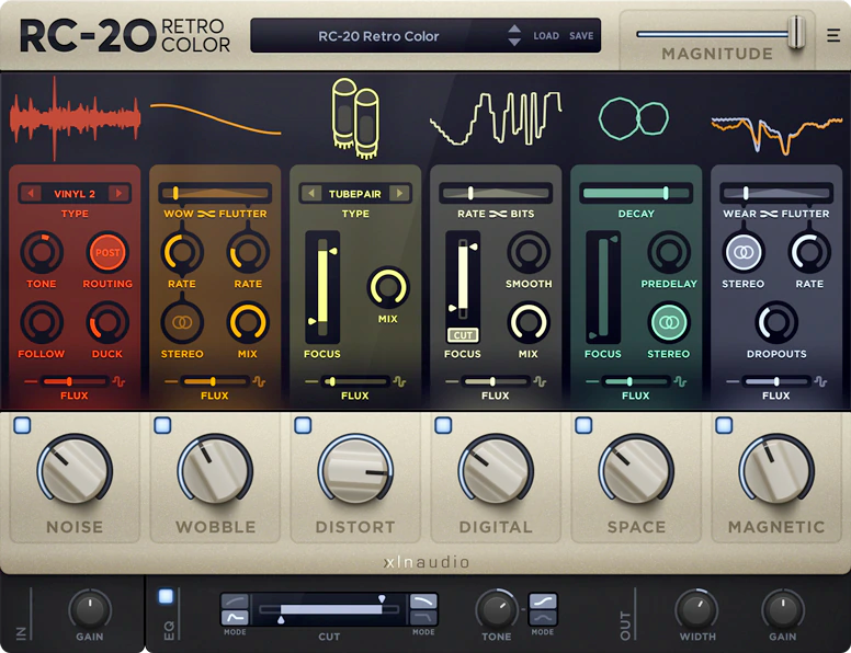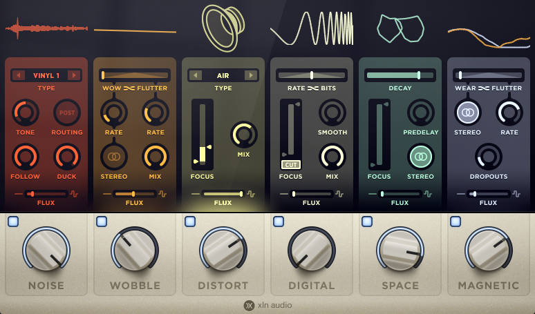 The Rc-20 is split up into 6 sections; Noise, Wobble, Distort, Digital, Space, and Magnetic.