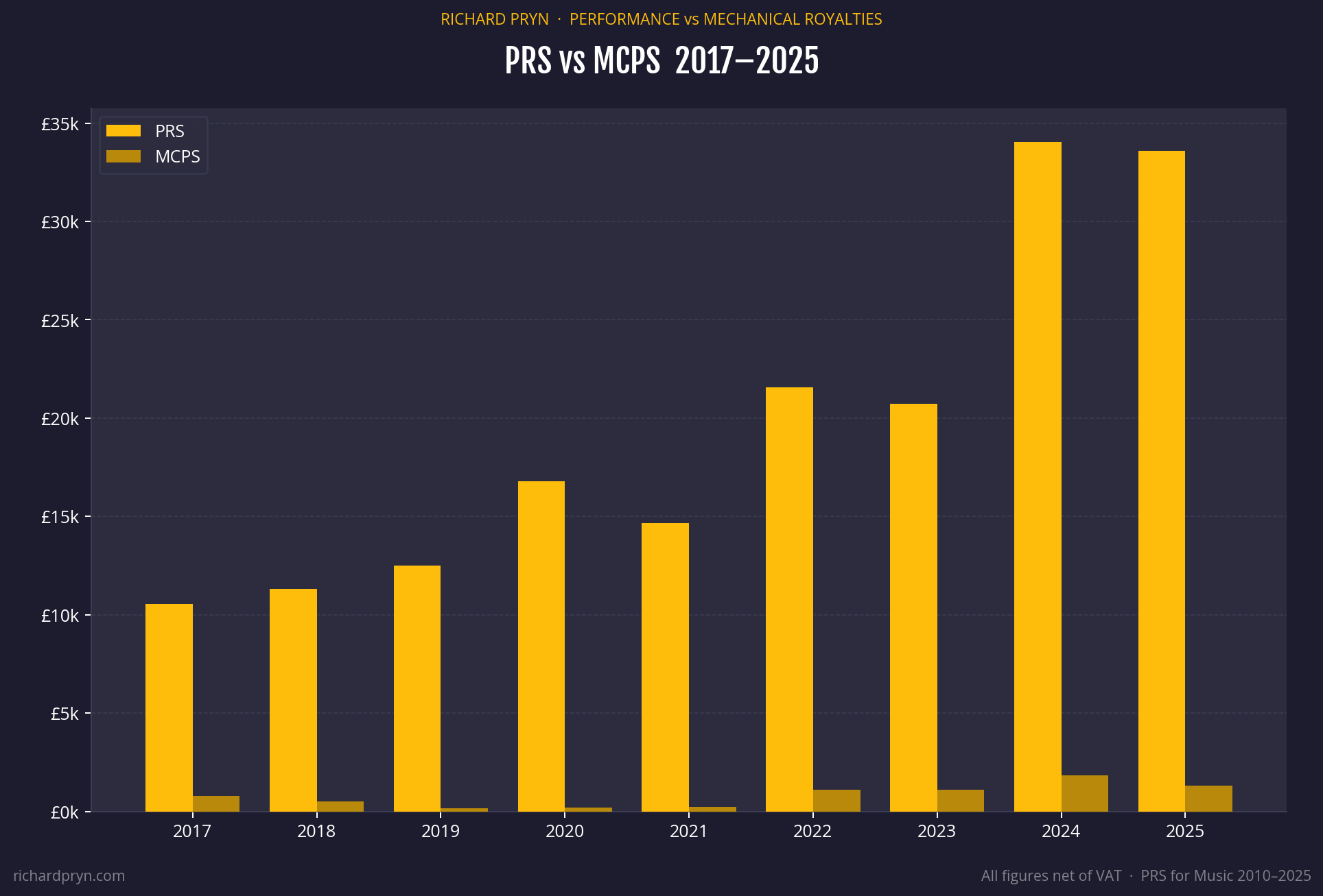 ๐๐ป Just for reference here is a comparison of my performance and mechanical royalty income over the years: