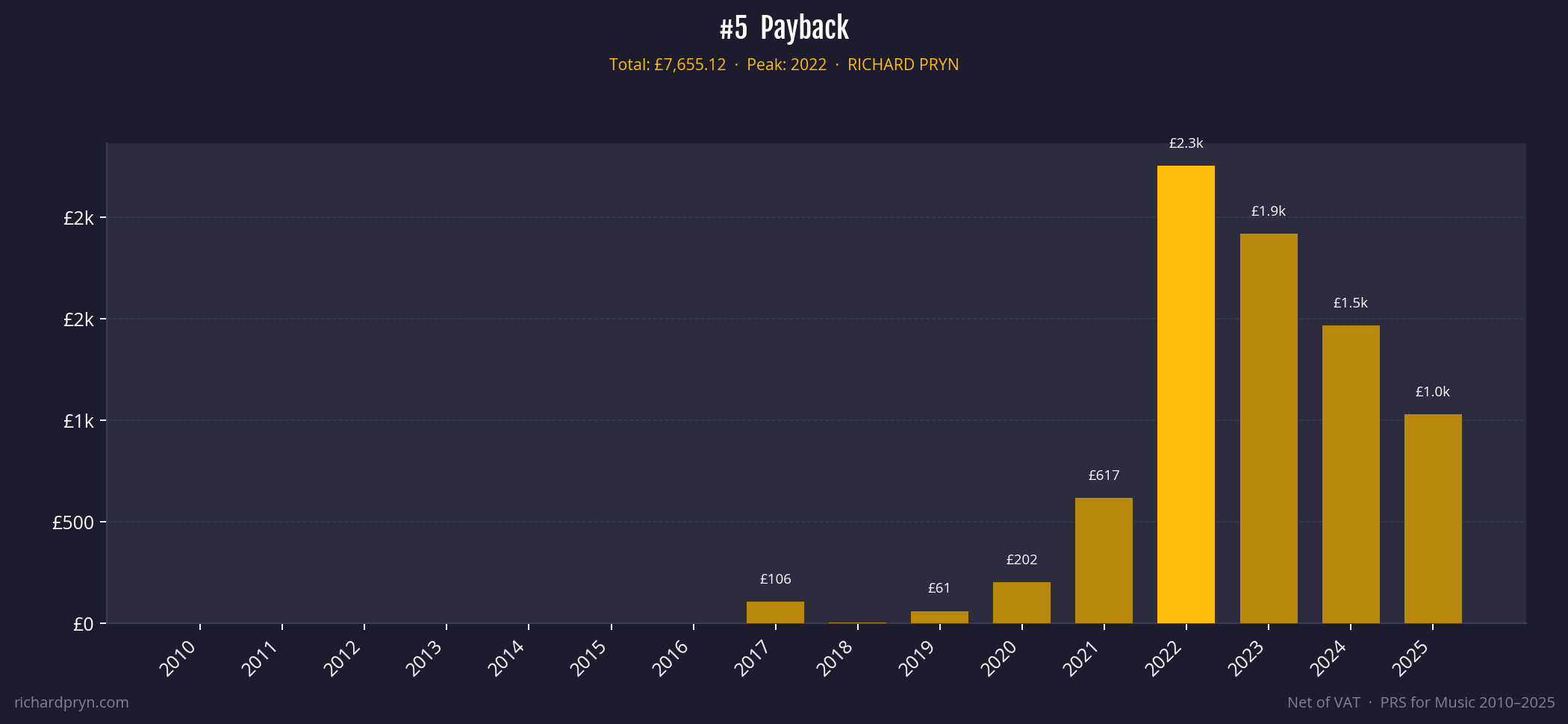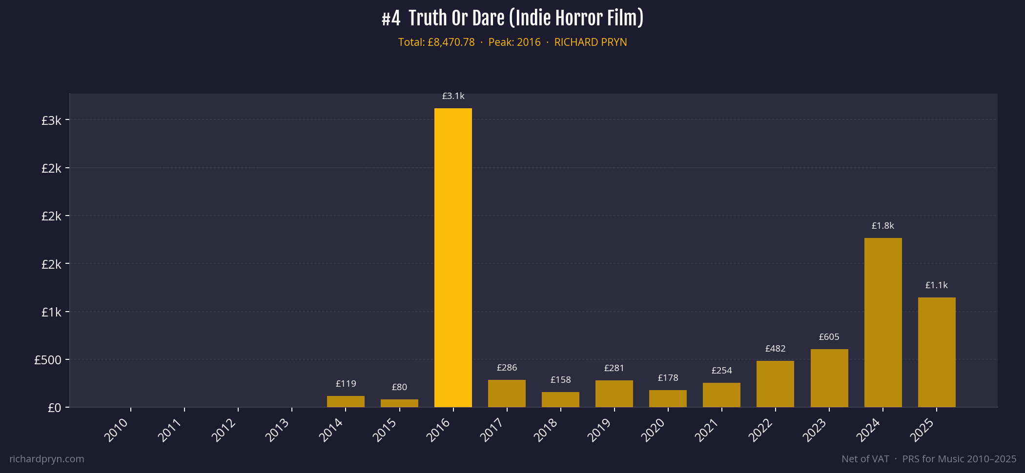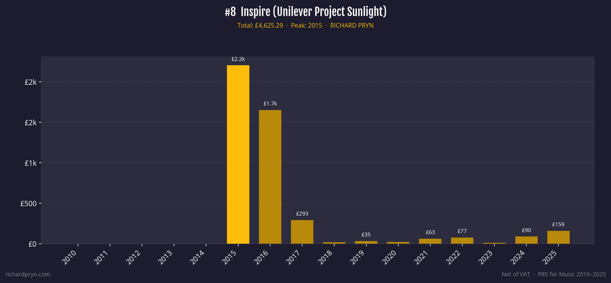 It is still earning in 2025 from placements first made in 2014. Eleven years of royalties from one project. I haven't written a note of it in over a decade but it keeps on paying.
