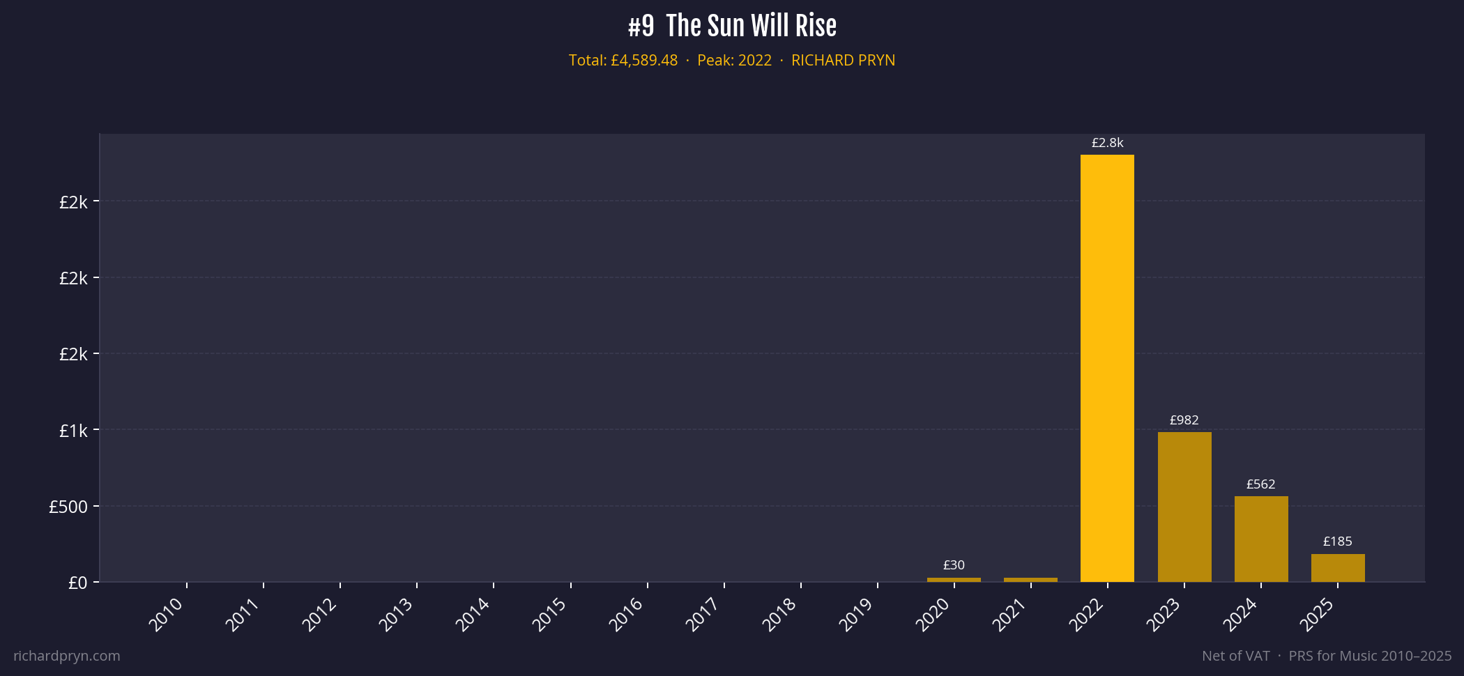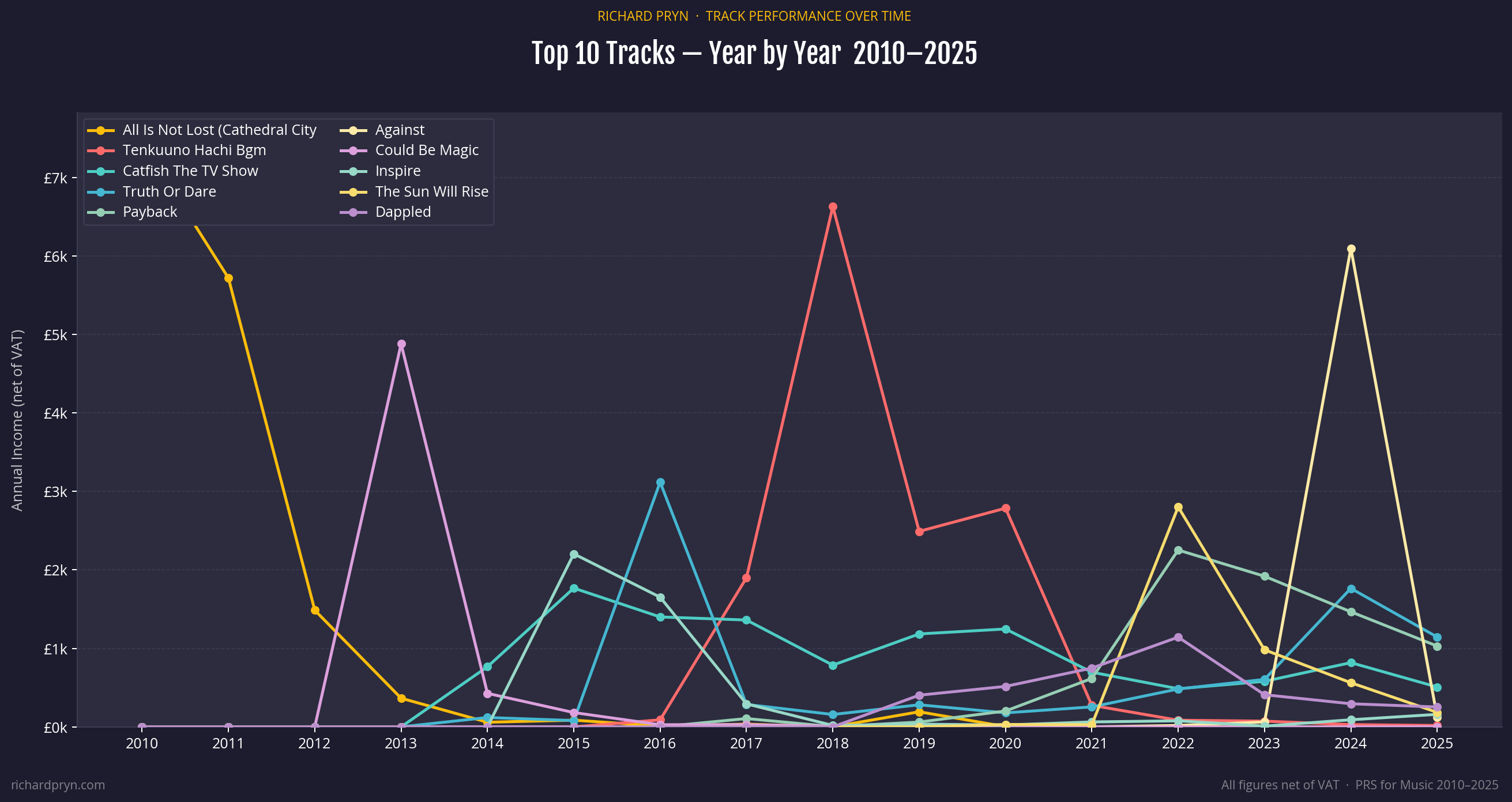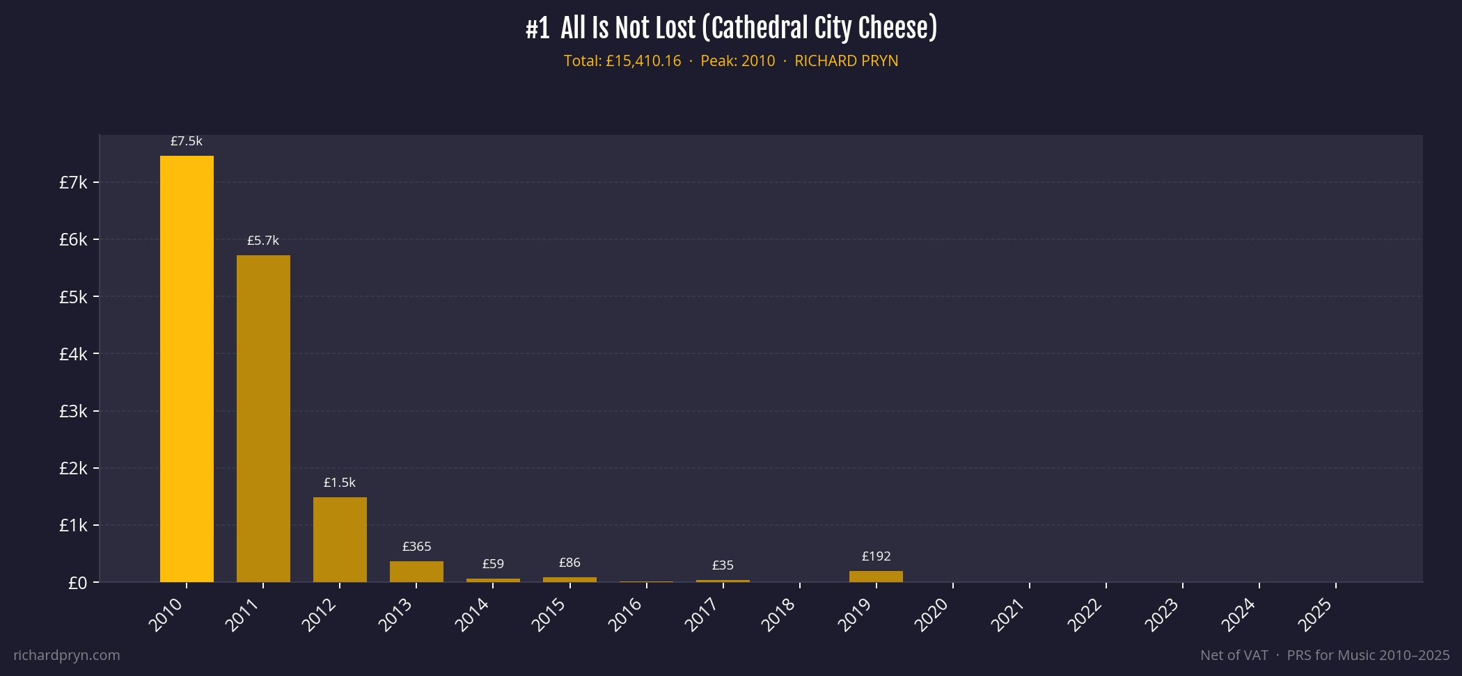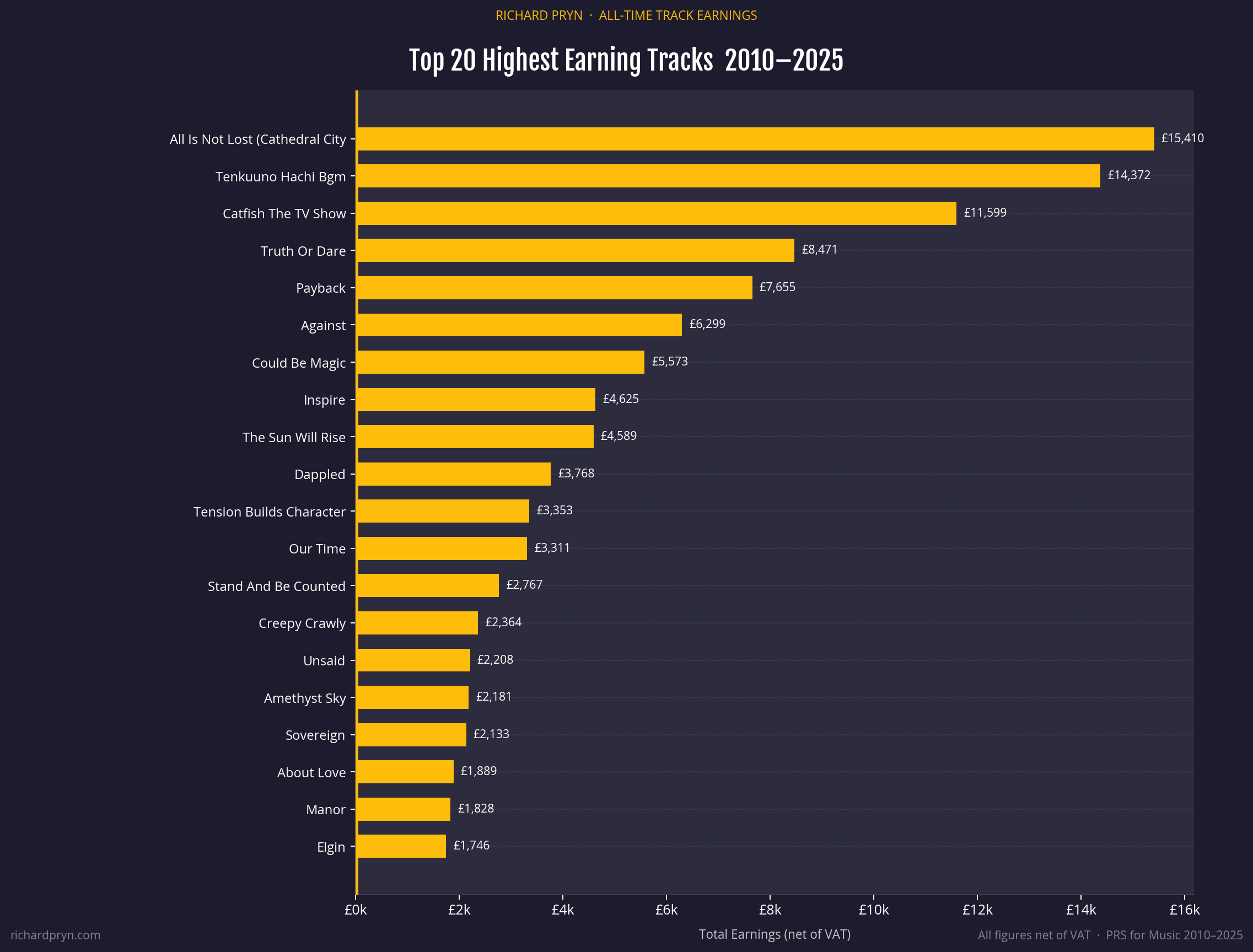 It is still earning in 2025 from placements first made in 2014. Eleven years of royalties from one project. I haven't written a note of it in over a decade but it keeps on paying.