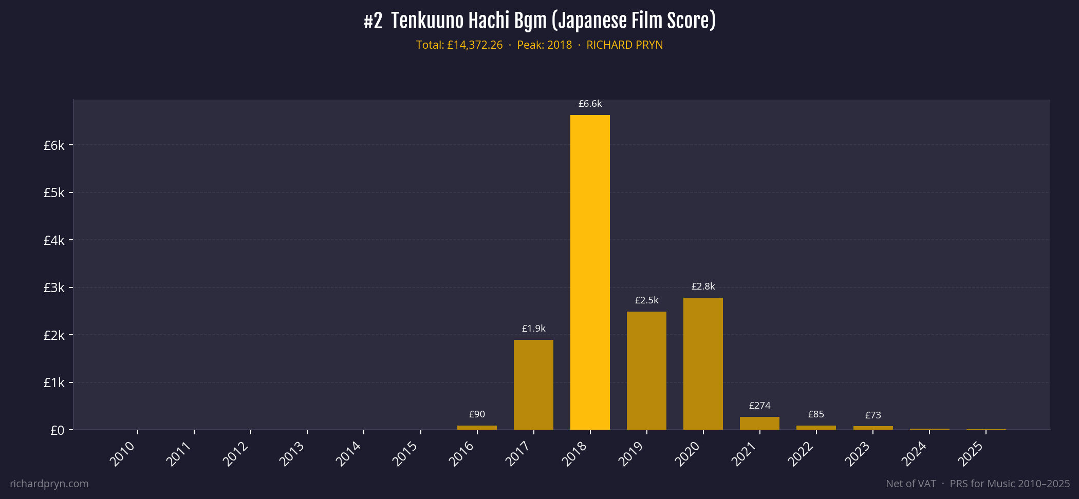 This is 100% Japanese JASRAC income from a Japanese film/production. A single project in an obscure Japanese market earning over ยฃ14k is a perfect example of how production music reaches places you'd never expect.