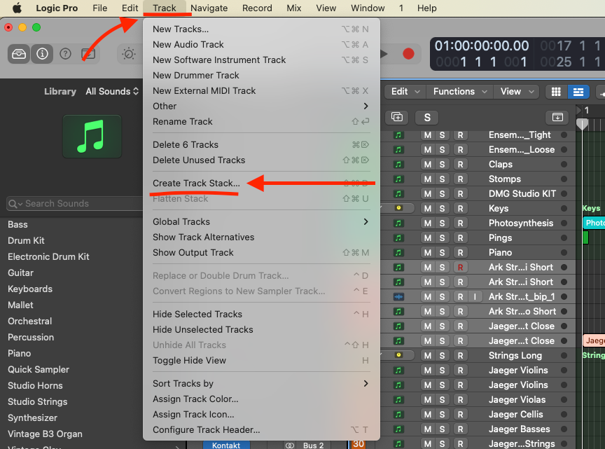 Or you can select Track from the top menu. From the Track menu, select Create Track Stack.