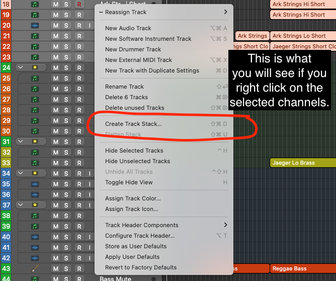 Once all the tracks you want to be added have been selected and you can see are highlighted you can either right-click on the selected tracks to bring up the track menu and select 'Create Track Stack...'