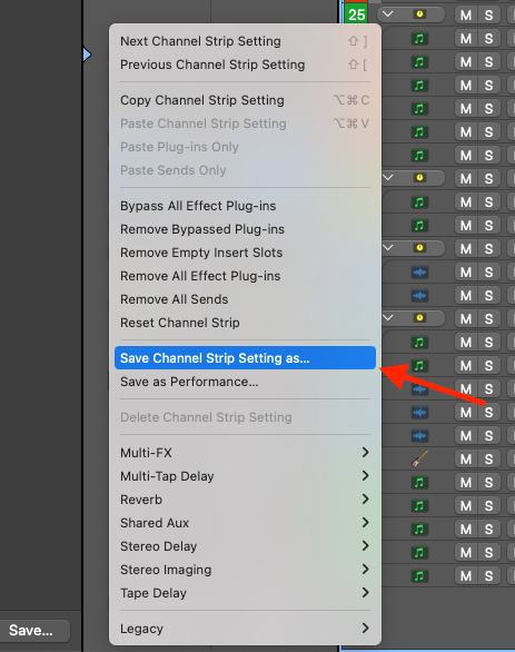 On the drop-down menu that appears, select Save Channel Strip Setting As...
