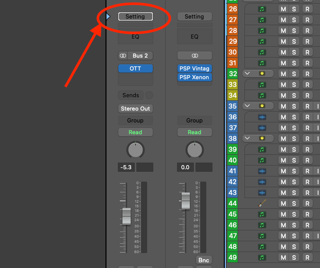 Click on the Setting button on the top of the channel strip: