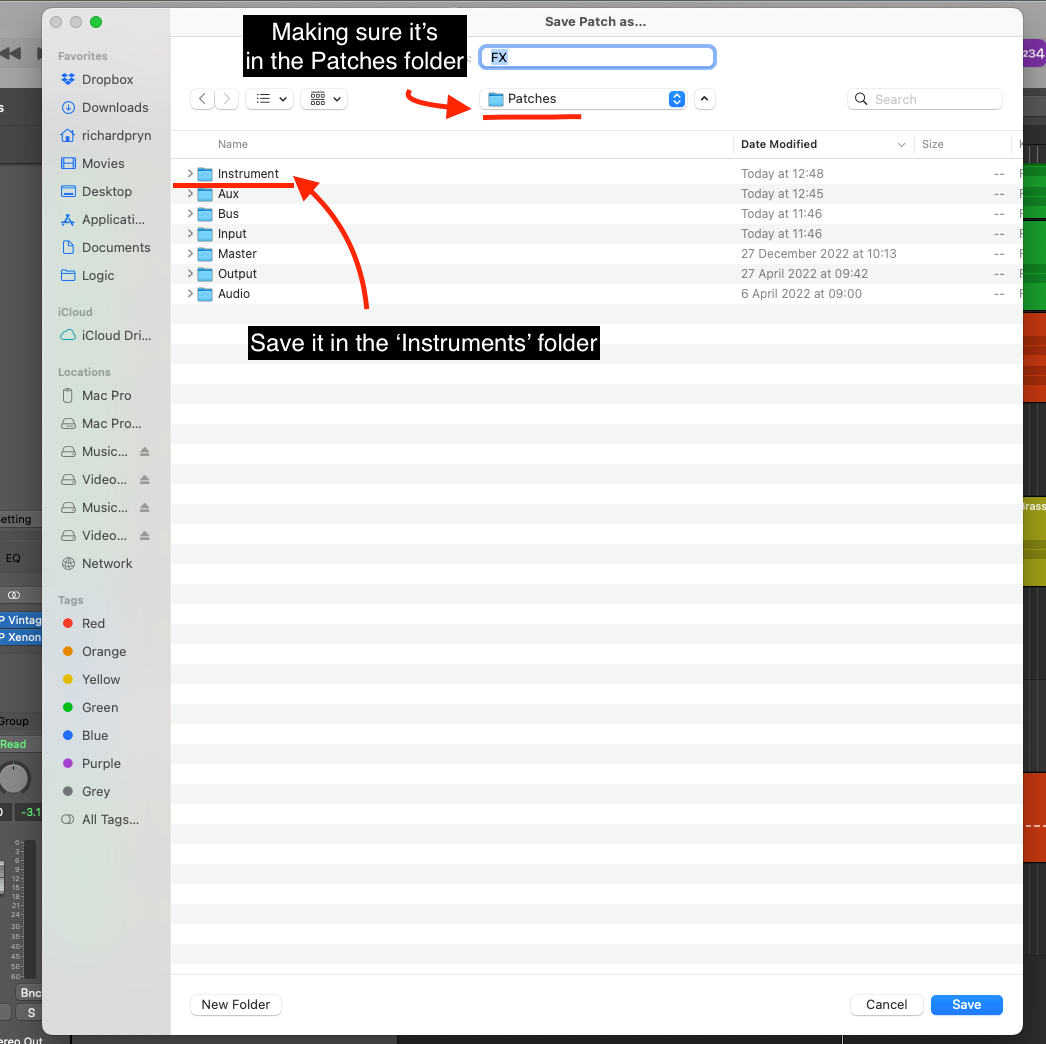 This will ensure that it will appear in the Library area of your Logic window under User Patches.