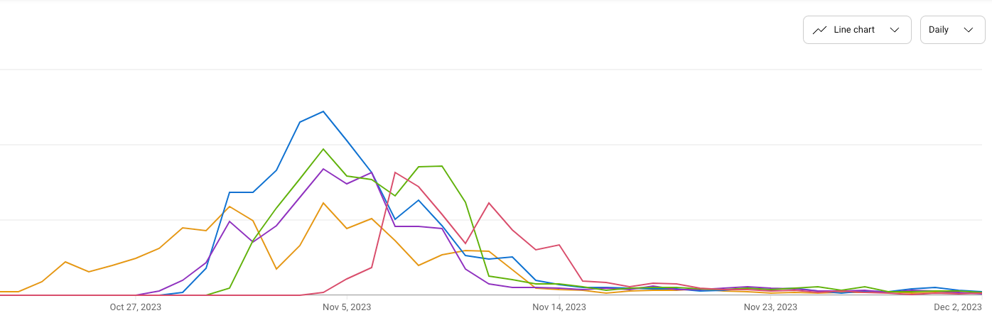 You post videos on a regular (weekly) basis, and they do well. Over a couple of weeks, they gain traction, and your views start to do a hockey stick curve up.